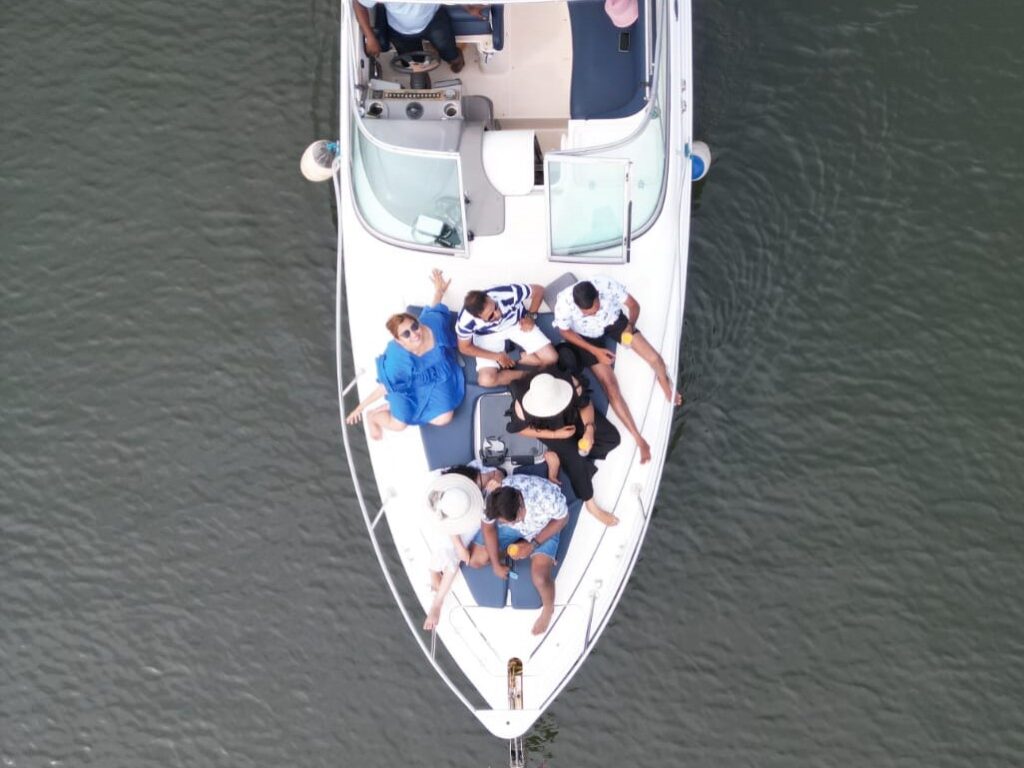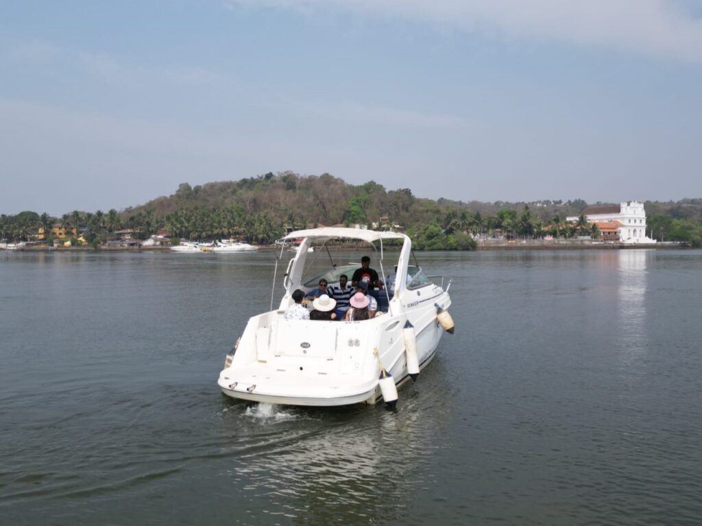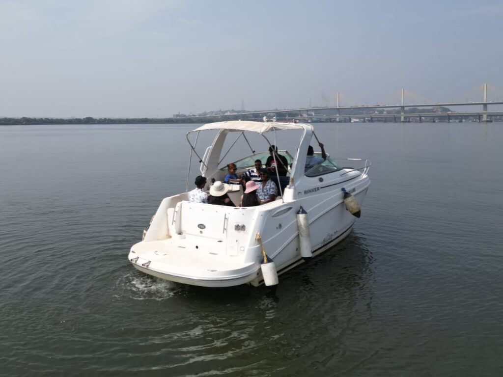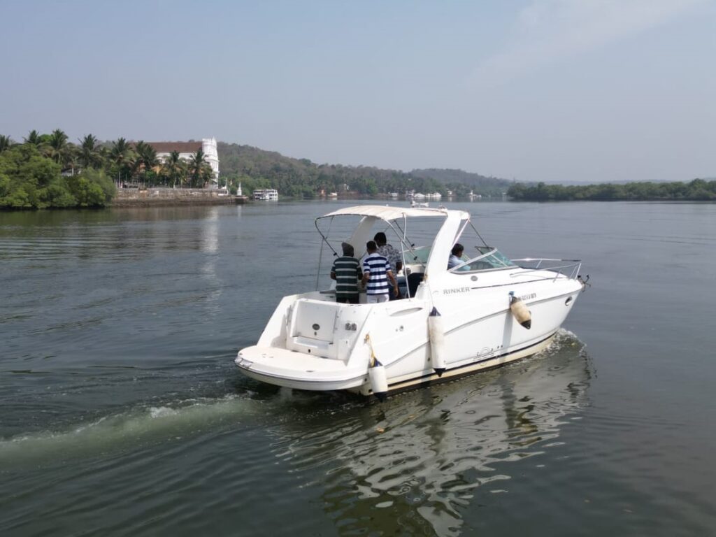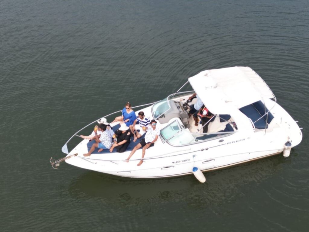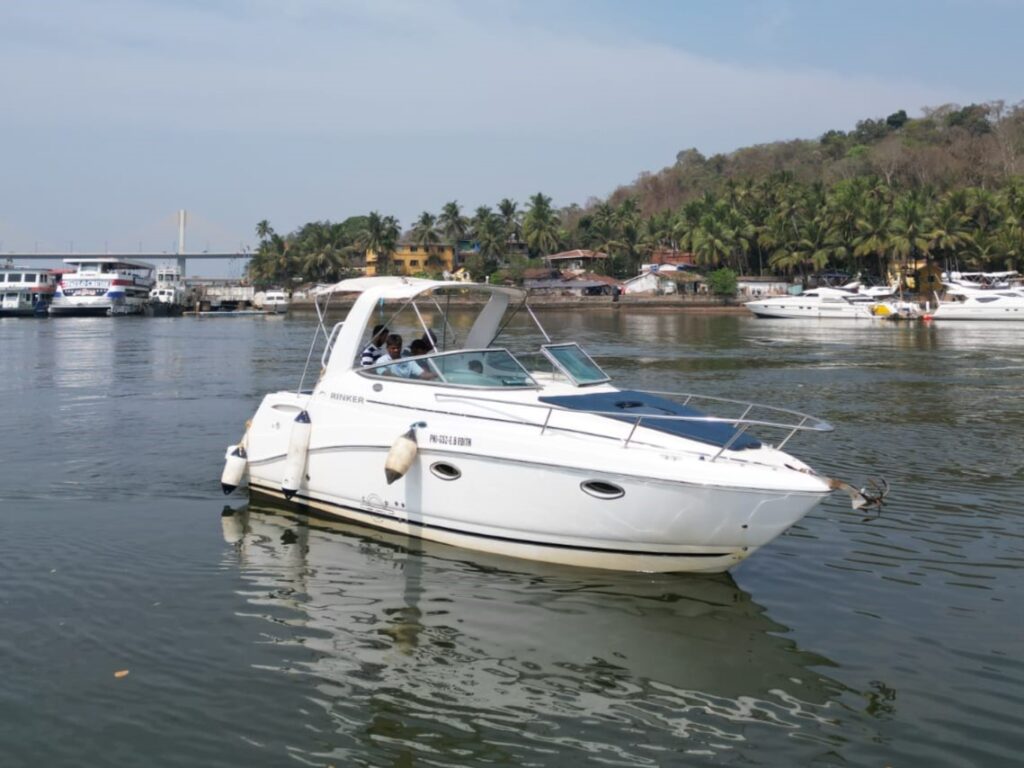 Rinker EC 260 is a 28-foot single cabin cruiser with top-notch amenities includinga cabin and a sleeper berth,music system, ice box, shower, bath, and toilet. It features seating at the stern and bow, powered by a 240hp Volvo Penta diesel inboard engine, and accommodates up to 7 passengers.